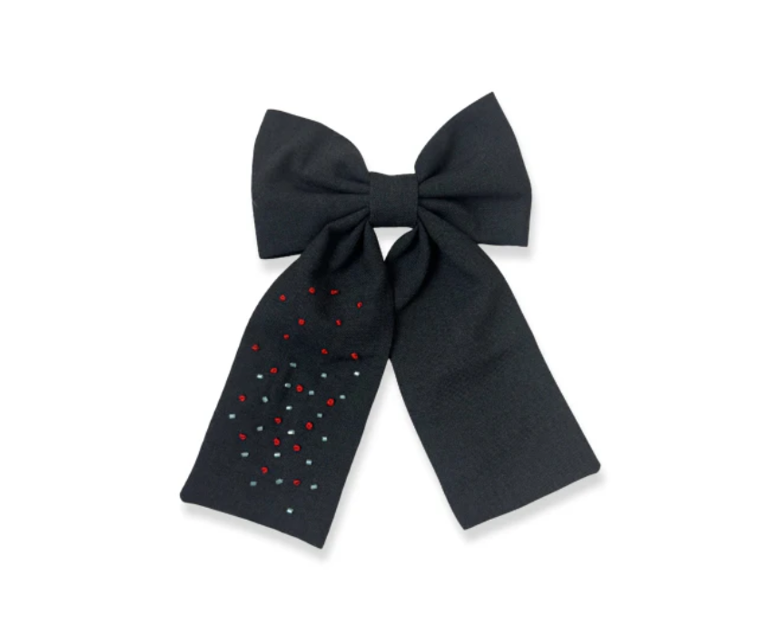 The Dotted Hair Bow is a classic accessory designed to add a playful yet elegant touch to any hairstyle. Crafted for a secure and comfortable fit, it easily clips into ponytails, half up styles, or loose hair for everyday wear. Its timeless dotted pattern complements both casual and dressy outfits, making it a versatile piece for school, work, or special occasions.