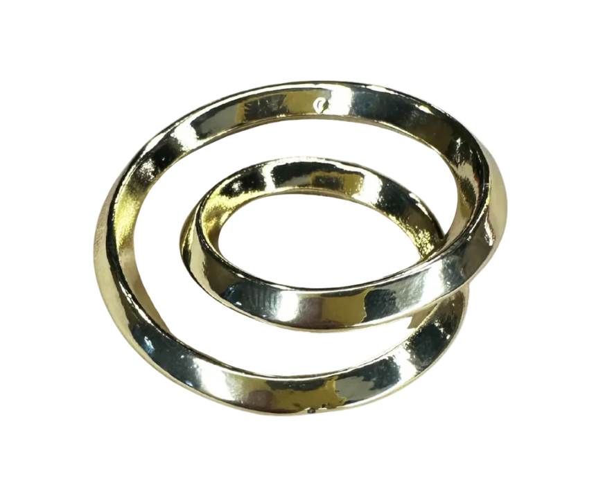 The Double Circular Bands Scarf Buckle features interwoven circular rings crafted from durable gold tone metal alloy, offering a sleek and contemporary finish. Designed to hold your scarf securely while adding a refined metallic accent, it enhances both casual and formal looks. Slide your scarf through the bands to create structured, elegant drapes with a polished touch.
