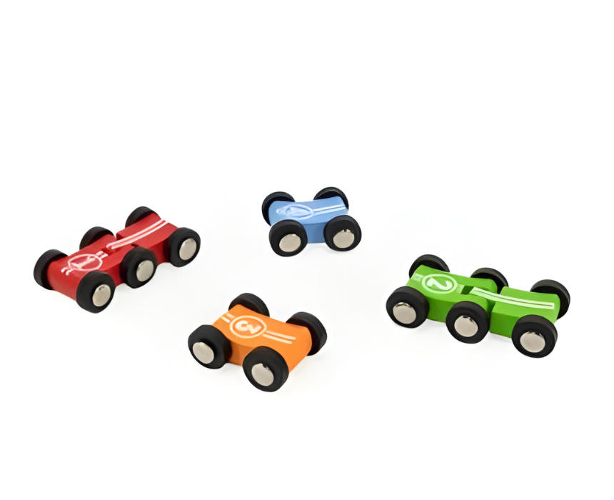 <p>The VIGA car race track is designed for ages 18 months and above, offering long lasting and creative racing fun. It features four double tracks made from different materials including mirror coated blue, yellow acrylic, green felt, and red wood so children can explore sound and speed variations. The set includes four cars, two double supports with platform, a twist lock starter, and finish line bells to enhance hand eye coordination and interactive play.</p>