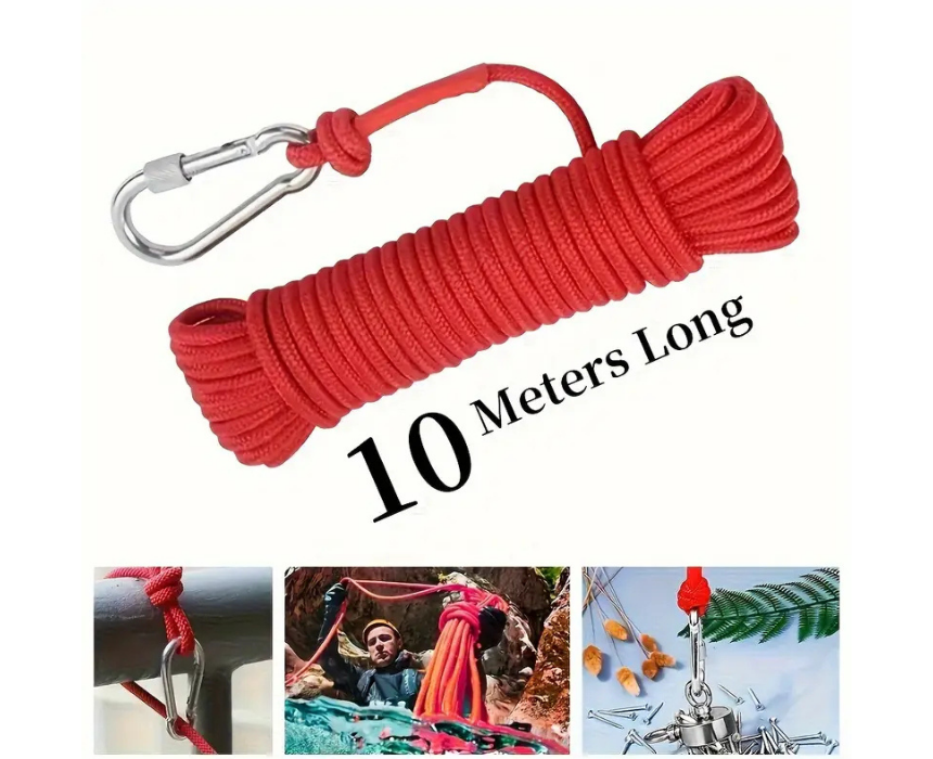 The Double-Sided Neodymium Magnet Kit 75mm delivers an impressive pulling force of up to 408.23 kg, perfect for retrieving heavy metal objects with ease. Made from high-quality neodymium with a Ni+Cu+Ni protective coating, it ensures durability and rust resistance. The kit includes a 10-meter rope with buckle and a central eyebolt, making it ideal for magnet fishing, lifting, and versatile outdoor exploration tasks.