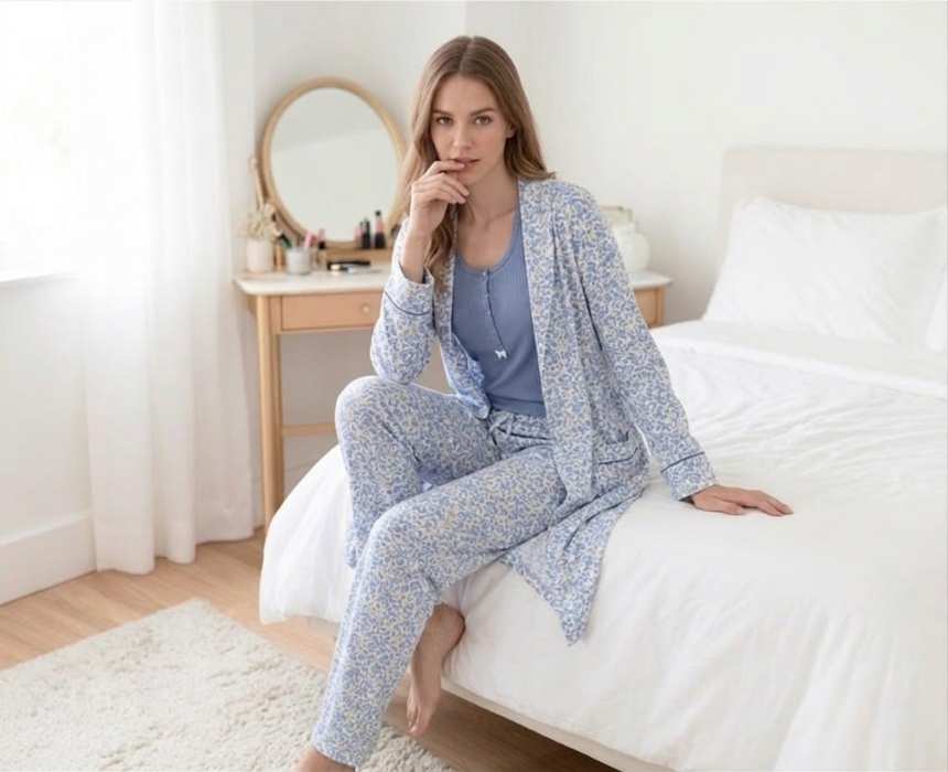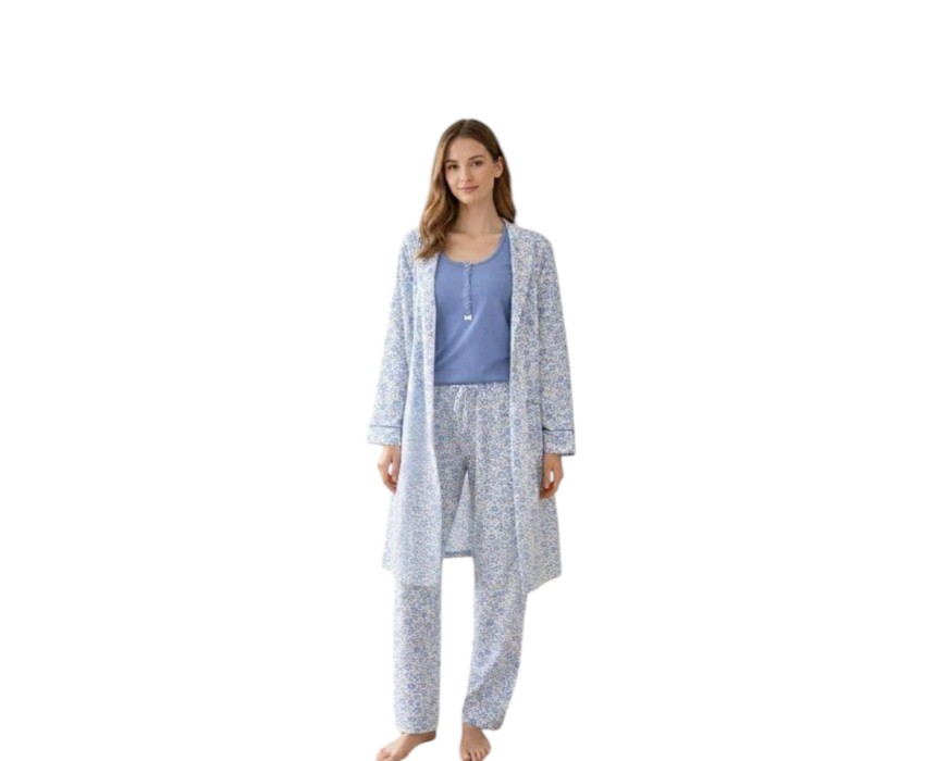 Doucette Women’s 3-Piece Robe & Pyjama Set in Blue