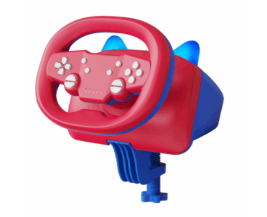 The DOYO 820 gaming racing wheel is designed for immersive driving simulation with responsive steering control, integrated pedals, and a comfortable grip built for long gaming sessions. Ideal for racing games, it enhances any gaming setup when mounted to a desk or racing stand, pairing well with console or PC play spaces. Its ergonomic design delivers realistic handling for casual and competitive racers alike.