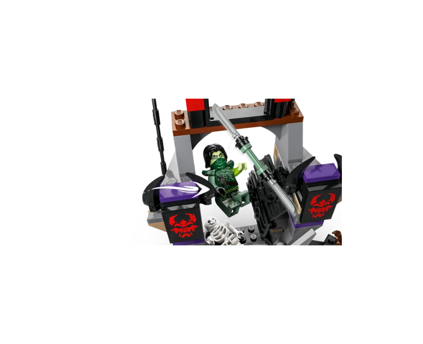 LEGO NINJAGO Dragonian Storm Village (71841) is a 305-piece battle arena playset for boys and girls aged 7+, inspired by season 3 of the Dragons Rising TV show and featuring a cage, retractable bridge, skeleton pit, climbing rope and a spinner with storm blades. The set includes 6 minifigures Zane, Nya, exclusive Morro, Rogue, a Dragonian Warrior and a Dragonian Scout, making it perfect for epic role play or styled as a dramatic display scene on a shelf or play table.