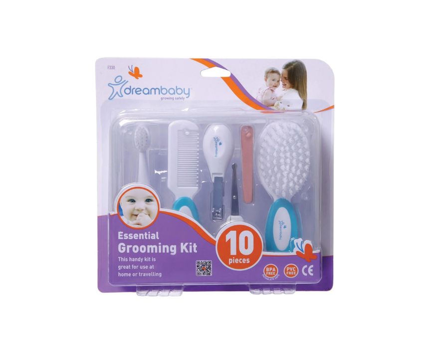 The Dreambaby Essential Grooming Kit offers 10 practical pieces designed to keep babies and toddlers well-groomed and healthy. Featuring ergonomic handles for comfortable use, the kit includes a toothbrush, scissors, comb, hairbrush, nail clippers, emery boards, and a durable travel case to keep everything organized and clean. Ideal for everyday grooming, it makes caring for little ones simple and stress-free.
