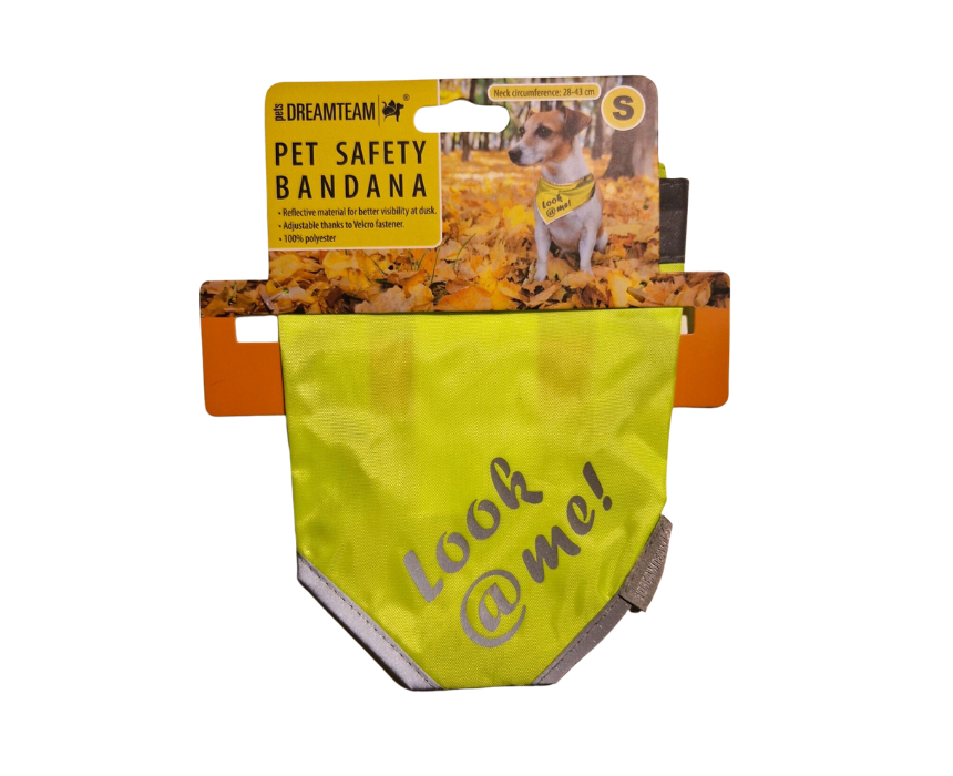 The Dreamteam Pet Safety Bandana features reflective strips for high visibility during night walks, keeping pets safe in low-light conditions. Made from soft, breathable fabric with an adjustable strap, it ensures a comfortable and secure fit for various pets. Stylish, durable, and practical, it combines fashion with essential safety for outdoor adventures.