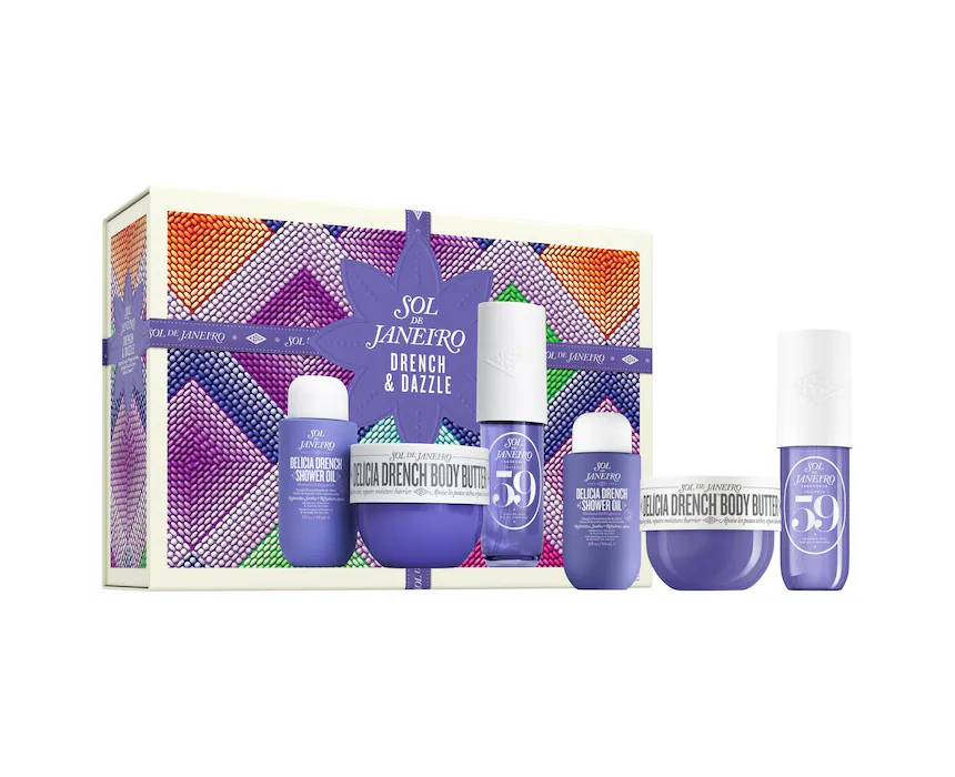 Drench And Dazzle Delícia Drench Body Routine Gift Set by Sol De Janeiro includes a selection of hydrating body care essentials designed to nourish and pamper skin. The set features luxurious creams and lotions that soften, smooth, and leave a radiant glow while infusing skin with a subtle, indulgent scent. Perfect for gifting or at-home pampering, each product can be used individually or together for a complete body care routine.