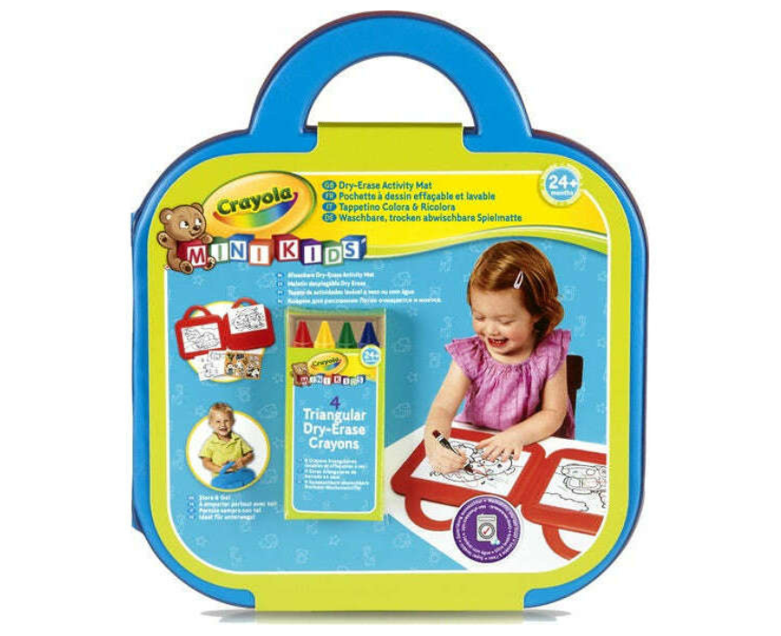 My 1st Dry Erase Desk is a portable activity set that lets toddlers aged 24 months and up draw, color, and erase repeatedly using dry-erase technology. The set includes 1 portable pouch, 4 triangular dry-erase pencils, 12 activity sheets, and 1 erasing cloth, making it perfect for on-the-go creativity and developing fine motor skills.
