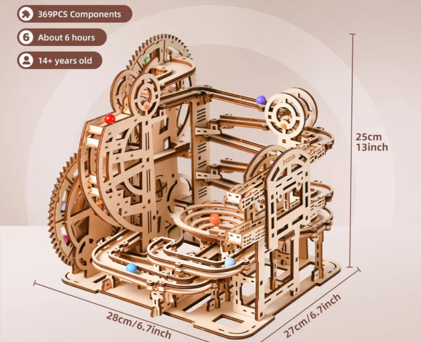 The Dynamic Marble Run 3D Mechanical Wooden Puzzle is a DIY wooden model kit that builds into an interactive marble run with moving gears and lifts that demonstrate motion and mechanics. Designed for teens, hobbyists, and STEM learners, it delivers an engaging hands-on build and satisfying marble action. Once assembled, it can be styled as an eye-catching desk toy or shelf display that adds a playful, engineering-inspired accent.