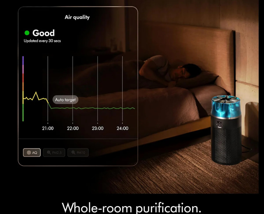 The Dyson Hushjet Compact Air Purifier features HEPA filtration and a quiet design, providing clean and healthy indoor air with minimal noise. Its long-lasting filter offers up to 5 years of use, making it ideal for bedrooms, offices, or small living spaces. Sleek and modern, it blends seamlessly with home décor while delivering efficient and reliable air purification.