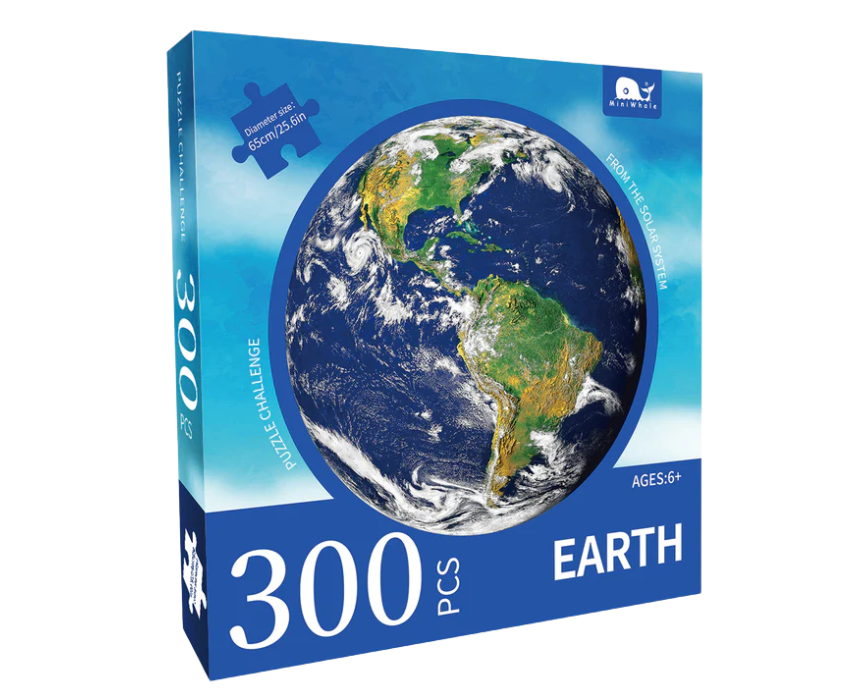 Earth Round Jigsaw Puzzle 300pcs 65cm is a detailed circular puzzle showcasing our planet with vibrant continents and oceans. Made from high quality durable cardboard, it assembles into a 65cm display perfect for framing or tabletop decoration. Ideal for puzzle enthusiasts and geography or space lovers, it offers hours of engaging fun and creates a beautiful educational display.