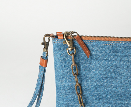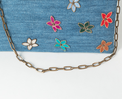 Easy go – A versatile and sophisticated bag that can be carried as classic handheld clutch or as elegant shoulder bag. Designed for those who appreciate the freedom to switch up their look effortlessly. Made with high quality denim fabric, decorated with real leather flowers. 20x33cm.