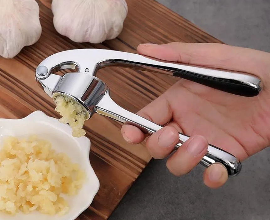 The Easy Squeeze Garlic Press Set makes mincing garlic effortless with its ergonomic, non-slip handle and durable zinc alloy and stainless steel construction. It includes a silicone garlic peeler and cleaning brush for convenient, mess-free use, and can also handle ginger and other small ingredients. Designed for home cooks and professionals, this versatile kitchen tool ensures precision, comfort, and efficiency with every use.