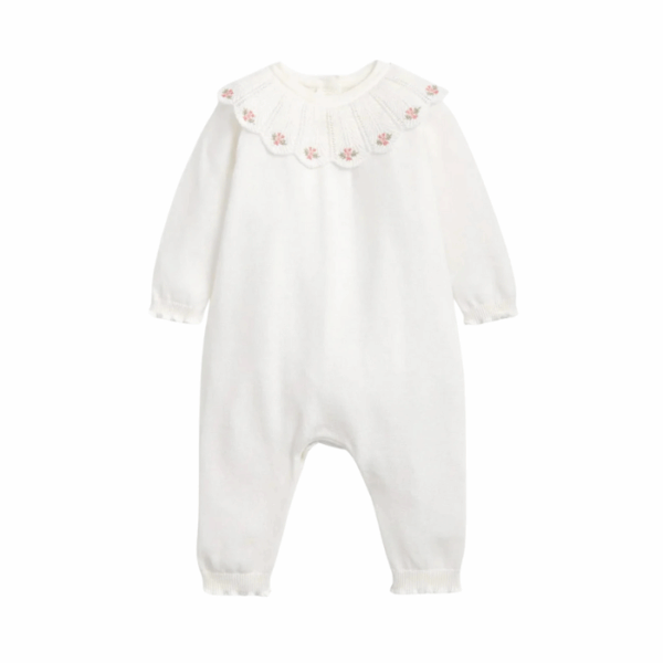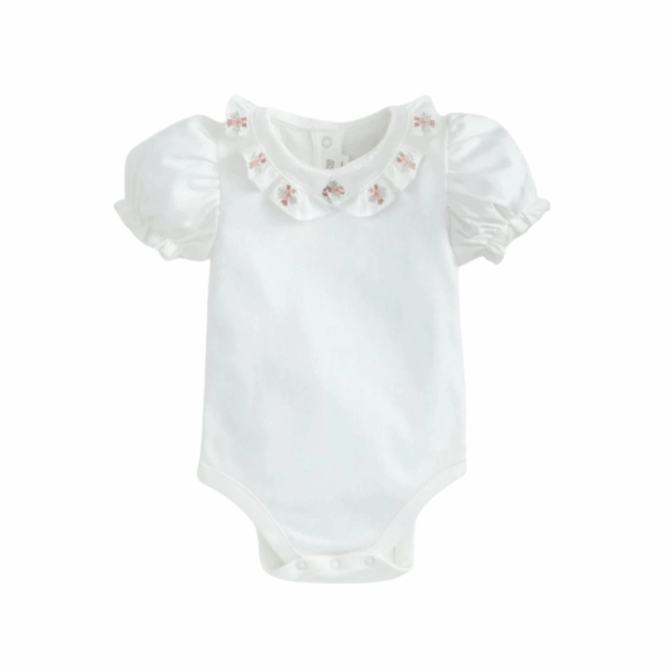 This Eid Shortie Romper is crafted from 100% soft cotton, designed for comfort and festive style. It features delicate gold embroidery on the front bodice, frill detailing at the front and back, elasticated frill hem cuffs, and popper openings at the back placket and gusset for easy dressing. Perfect for celebrating Eid, it pairs beautifully with soft socks or festive accessories for a complete look.