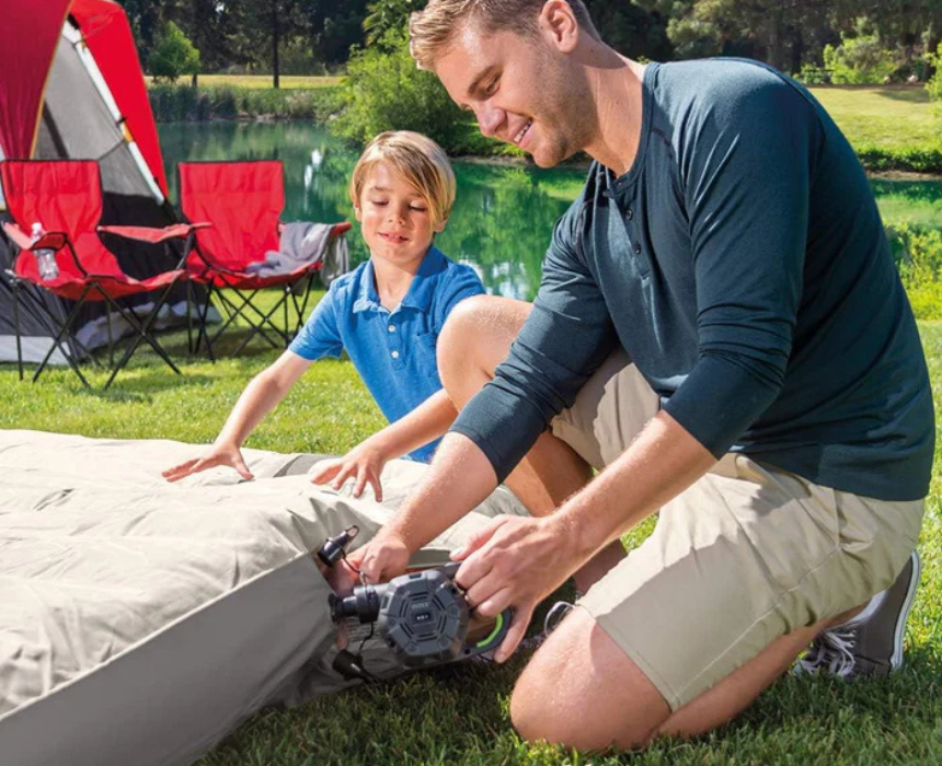 The QuickFill rechargeable electric pump offers fast and precise inflating and deflating for indoor and outdoor use. Lightweight and easy to handle, it features three interchangeable nozzles, a built-in battery that recharges via 12V car adapter or 220-240V outlet, and a charging indicator for convenience. With an airflow of ≥650 L/min, it’s perfect for air mattresses, inflatables, and more anytime, anywhere.