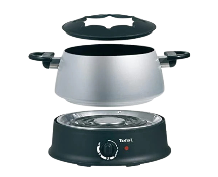 Serve delicious fondues for up to 6 people with this 1200 W electric fondue set, featuring an adjustable thermostat for oil, cheese, chocolate, or other fondues. The aluminium pot has a non-stick coating inside and out, and an operating lamp indicates when in use. Dishwasher-safe for easy cleaning, this versatile set makes family gatherings, parties, or special occasions effortless and enjoyable.