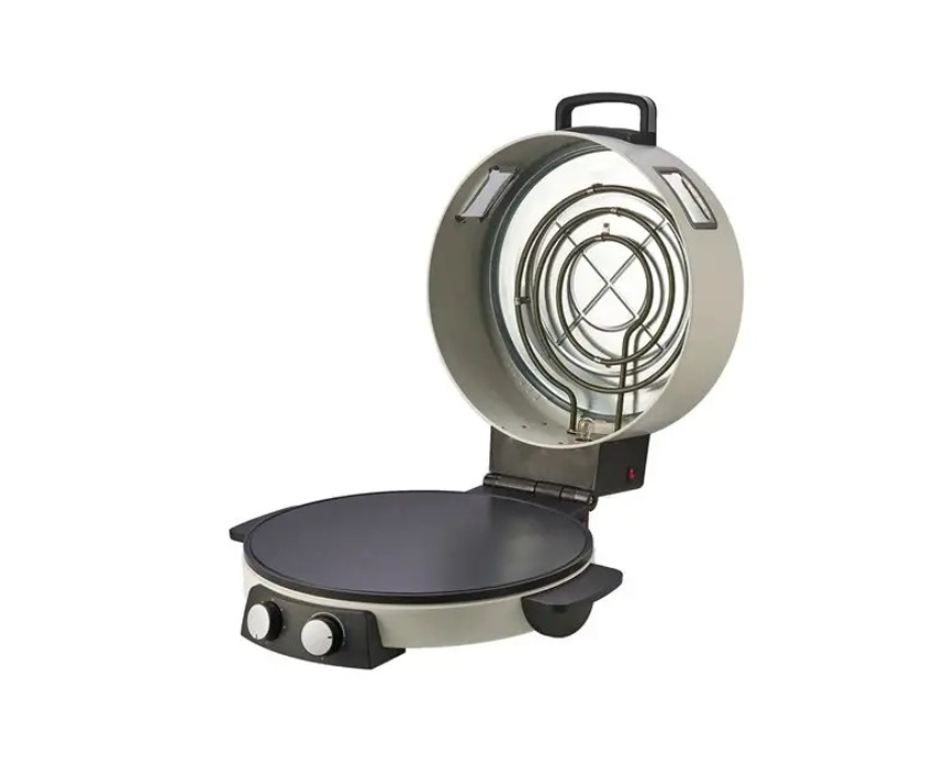 Made in Germany this 12 inch electric pizza maker delivers perfectly cooked pizzas in just 6 minutes with a powerful 2000W heating system reaching 220 to 240°C. Designed with a durable stainless steel heating coil and anti slip base for stability it ensures fast safe and even cooking. Ideal for homemade pizzas and Arabic bread it brings authentic pizzeria flavor right to your kitchen countertop.