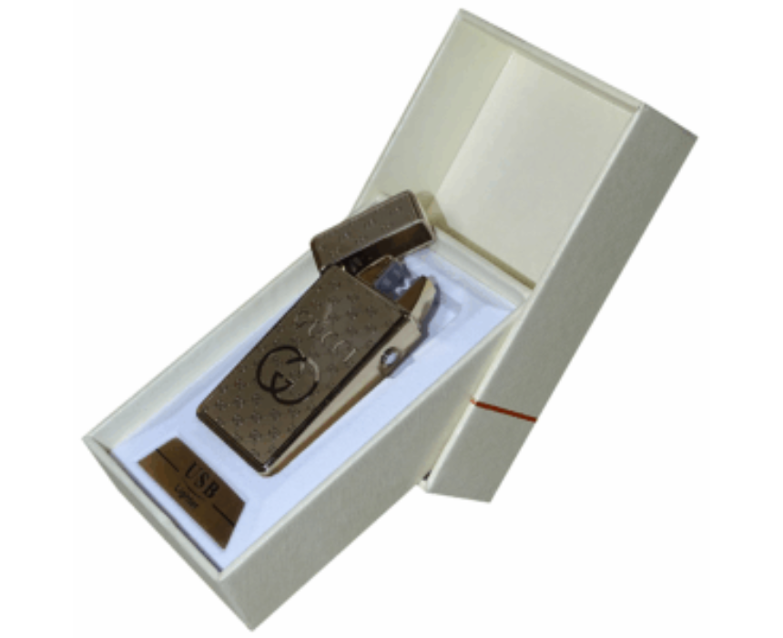 The electric rechargeable Gucci lighter features a sleek flameless design with USB charging for convenient and wind resistant use. Compact and stylish, it fits easily in a pocket or bag and complements modern outfits or accessories for daily carry. Designed for reliability and reusability, it offers a practical alternative to disposable lighters.