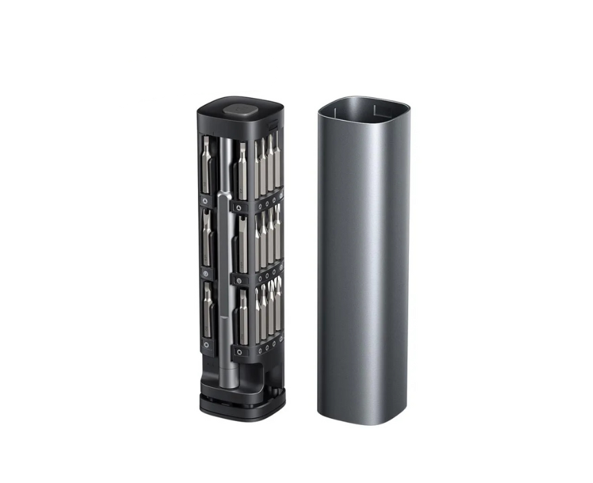 The 46 in 1 Screwdriver Set is a premium precision repair toolkit designed for electronics, watches, glasses, and small devices. Made with a durable aluminum alloy shell and handle, this compact 258g set includes 42 S2 steel bits, a metal pry bar, ESD 10 tweezers, and a built in magnetizer. With bit sizes from SL1.0 to PH1 and a secure H4×28mm fit, it offers strength, accuracy, and long lasting performance, ideal for professionals and DIY enthusiasts alike.