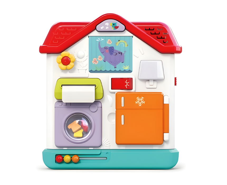 <p>This sensory toy house by Hola is designed for ages 10 months and above and features multiple interactive activities to engage toddlers. Children can slide, pull, shake, and explore elements like a washing machine drum and fridge, enhancing fine motor skills and curiosity about everyday household items. Music and sound effects support auditory development while providing fun and educational playtime.</p>