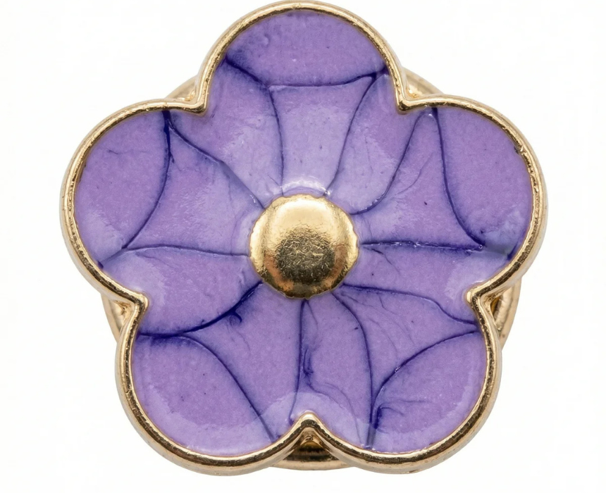 These enamel flower button covers feature a dainty floral design in a compact 1.5 cm size, offering a subtle yet charming decorative touch. Designed as versatile shirt clips or brooch accents, they easily attach to blouses, collars, or cuffs for an elevated everyday look. A delicate accessory perfect for adding refined detail to both casual and polished outfits.
