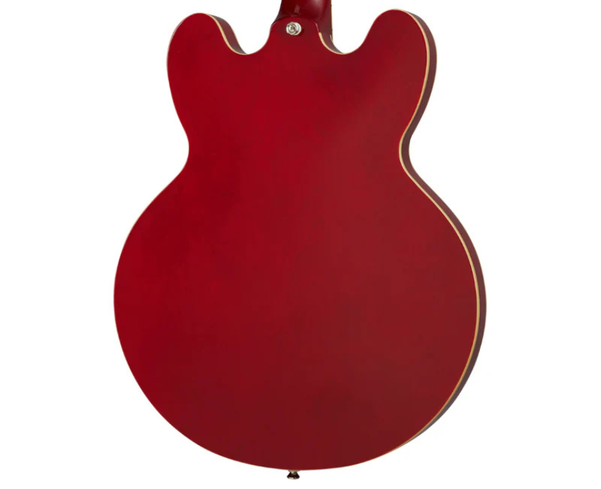 The Epiphone ES-335 in Cherry is a semi-hollow body electric guitar combining classic design with versatile tone. It features a laminated maple top, back, and sides, a mahogany neck with rosewood fingerboard, and dual humbucking pickups for rich, warm sound suitable for blues, rock, and jazz. Its sleek cherry finish and iconic double-cutaway design make it ideal for stage performance or studio recording.