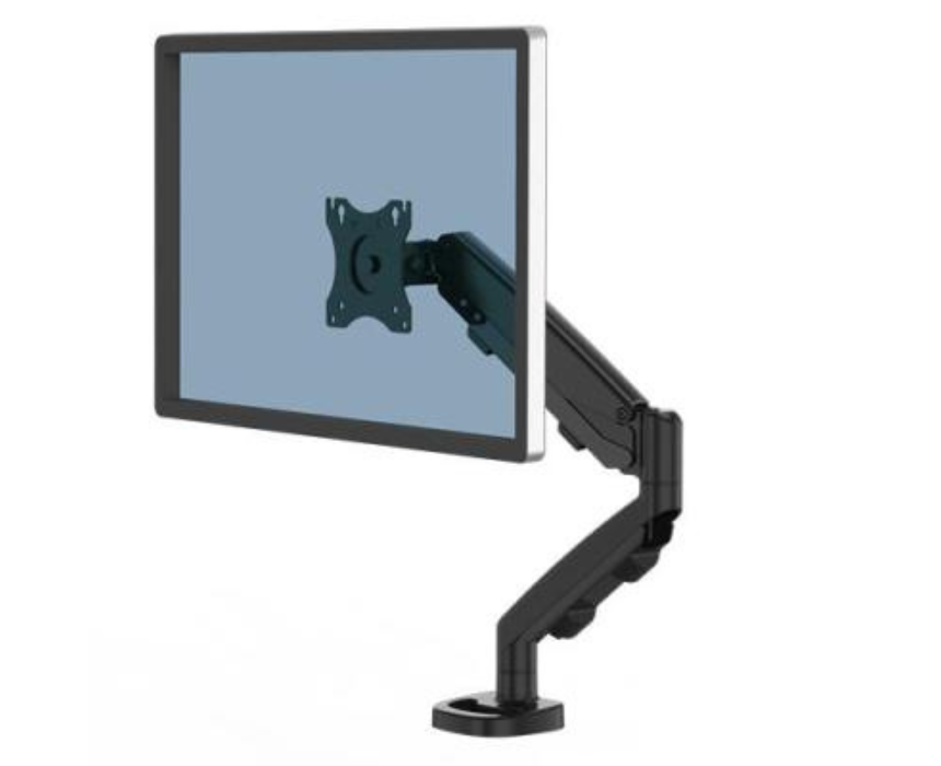 The EPPA Single Monitor Arm in black provides a sturdy and adjustable mount for monitors, allowing ergonomic positioning and freeing up desk space for a cleaner, organized workspace. Its sleek black design complements modern office setups, making it ideal for home offices, professional workstations, or multi monitor configurations.