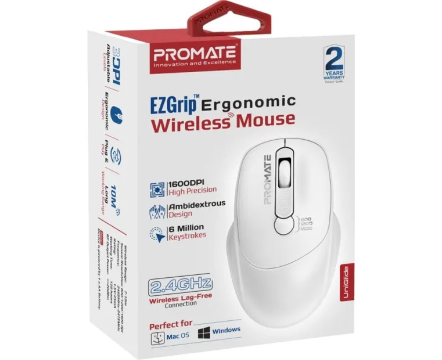 The Ergonomic Wireless Mouse Ezgrip White Uniglide offers comfortable hand support and smooth, precise tracking for work, study, or casual use. Its sleek white design complements home offices, professional setups, and modern desktops while providing wireless freedom for clutter-free use. Ideal for long sessions, it combines ergonomic comfort, reliability, and style in one compact mouse.