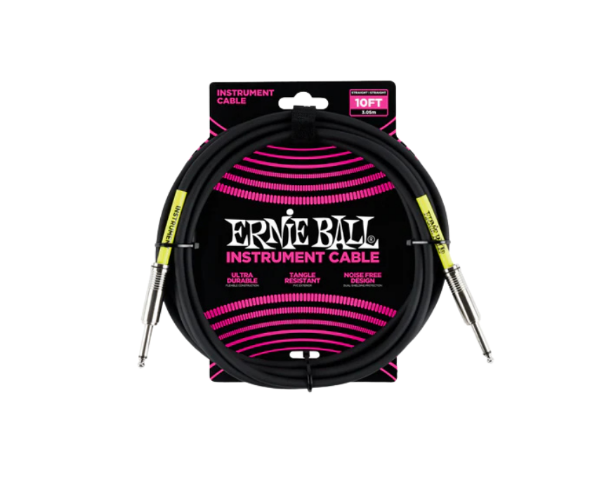 Ernie Ball 10′ Instrument Cable – Black features dual-conductor construction for clear tone, multiple shielding for low noise, and a durable PVC jacket for long-lasting performance. Ideal for electric and acoustic instruments.