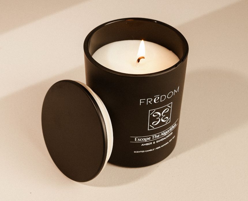 Escape the Algorithm Scented Candle blends rich amber with warm sandalwood to create a grounding scent that invites digital detox and real-world connection. Perfect for unplugged evenings, reading hours, or deep conversations, it brings warmth and calm to any space. Place it on a coffee table, bedside, or meditation corner for a cozy, mindful ambiance.