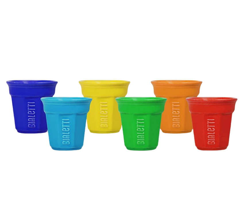 This set of multi-coloured handleless coffee cups adds a vibrant touch to your table, featuring bright shades from red to blue that inspire creativity and fun. Perfect for serving espresso or small beverages, these cups bring personality and style to any kitchen. Ideal for everyday use or entertaining, they combine practicality with a cheerful, modern design.