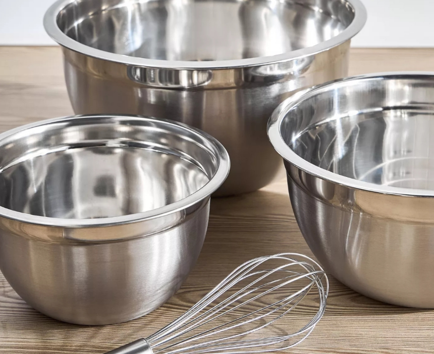 This baking set includes three mixing bowls measuring 18 cm, 22 cm, and 26 cm, one whisk, four measuring spoons, and four measuring cups. Essential for baking chocolates, cakes, and all types of confectioneries, this set is a must have for any kitchen. All pieces are food safe and dishwasher safe, making it a practical and convenient choice for everyday baking.