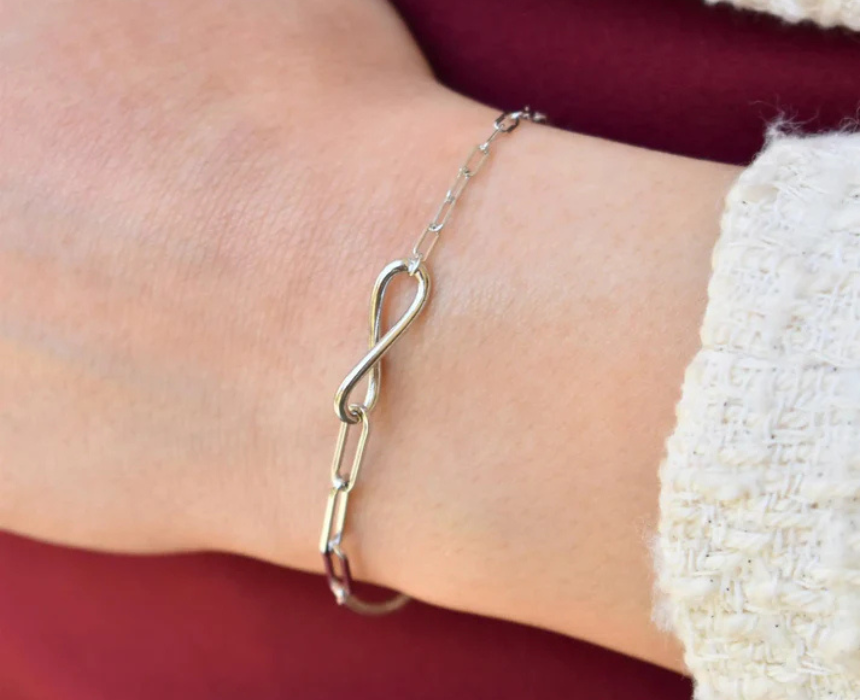 Éternelle by Aurélie Bidermann is crafted from 925 sterling silver with lustrous rhodium plating, symbolizing infinite attachment and enduring love. This minimalist, elegant bracelet merges poetic artistry with refined luxury, making it a statement piece for both casual and formal occasions. Éternelle celebrates timeless sophistication and unbreakable bonds.