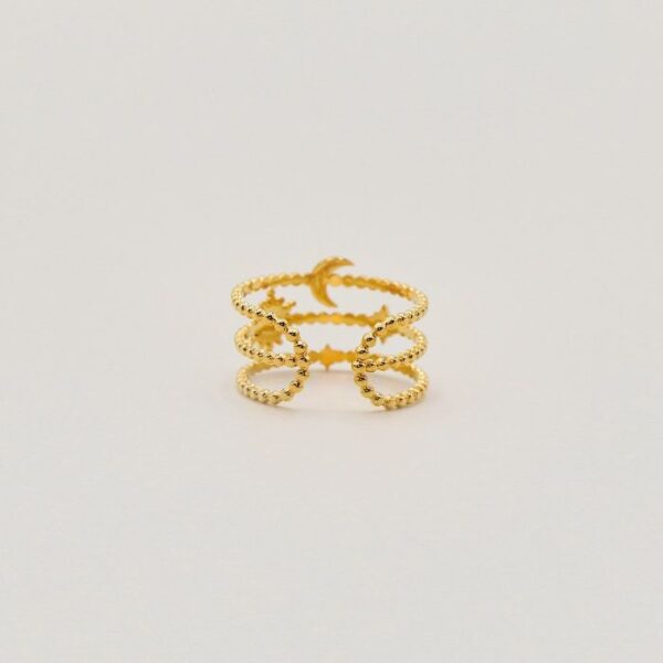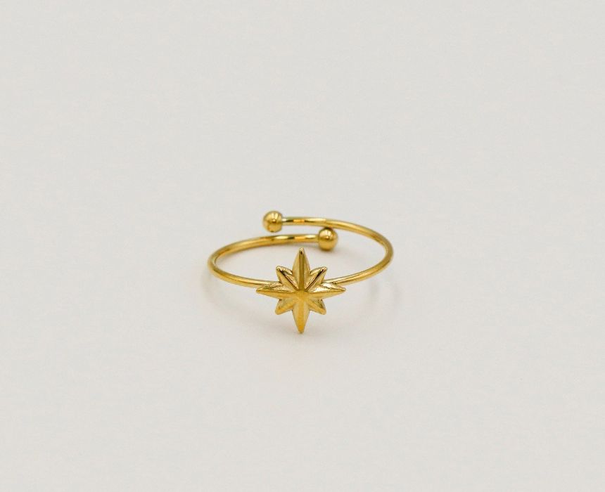 Add a celestial touch to your style with the Etoile Ring, featuring a unique star-shaped design that is both eye-catching and elegant. Crafted with a thin, modern minimalist approach, this ring offers a sleek and contemporary look. The gold-plated finish gives it a luxurious appeal while ensuring durability. Waterproof and soap-safe, it’s perfect for daily wear. With an adjustable size for a personalized fit, the Etoile Ring is versatile and comfortable, making it the ideal accessory for any occasion.