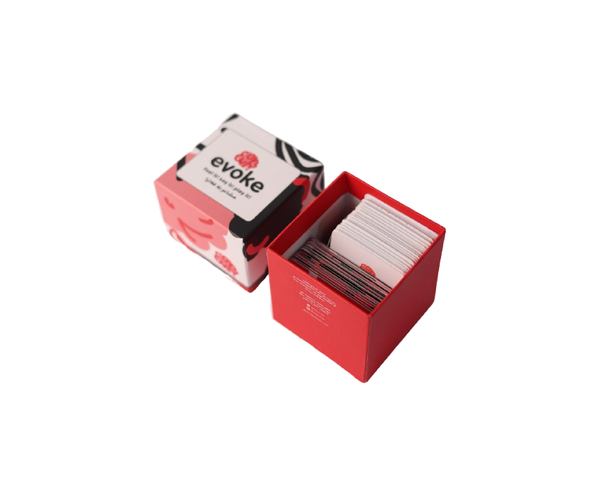 Evoke is an emotional intelligence card game designed to help players enhance self-awareness, communication, and connection through engaging gameplay. Perfect for game nights, gatherings, or personal growth, it encourages meaningful conversations and deeper bonds. Easy to play anytime, anywhere, Evoke is a fun and interactive way to develop essential life skills while fostering empathy and understanding Designed for kids aged 13+.