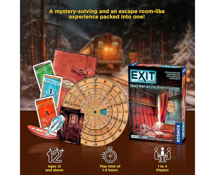 Exit Dead Man on the Orient Express is an immersive tabletop game that challenges players to solve puzzles and unravel mysteries aboard a luxury train. It encourages teamwork, critical thinking, and problem solving while providing an engaging adventure experience. Perfect for family game nights or group play, it delivers interactive fun and strategic challenges for players of all ages.