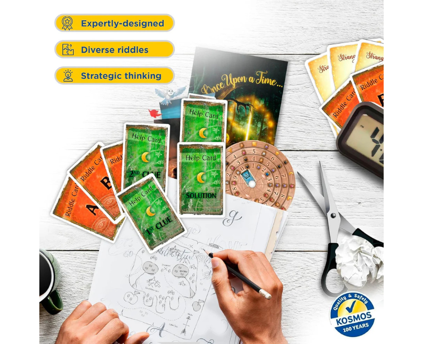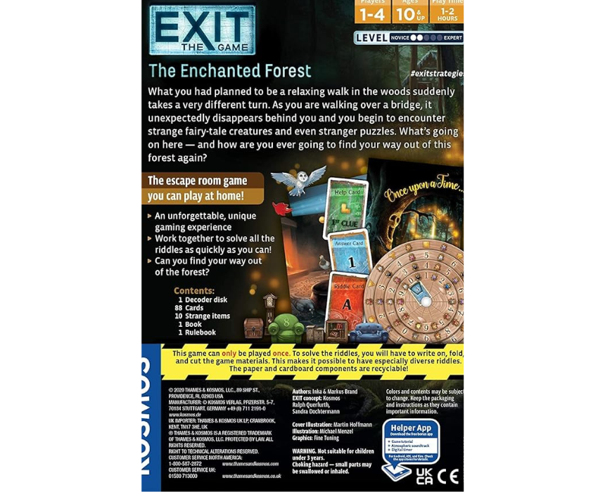 Exit The Enchanted Forest is an immersive tabletop game that challenges players to solve riddles and puzzles while exploring a magical forest setting. It encourages teamwork, critical thinking, and problem solving as players work together to complete the adventure. Perfect for family game nights or group play, it provides an engaging and interactive experience for all ages.