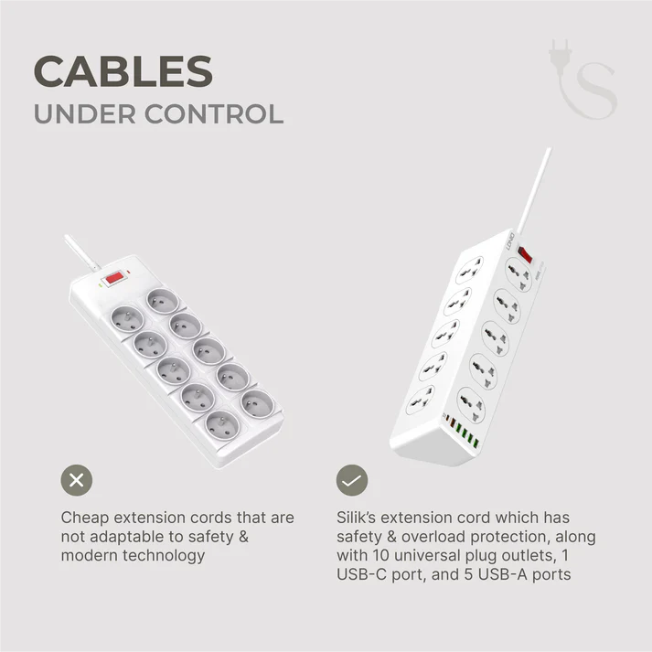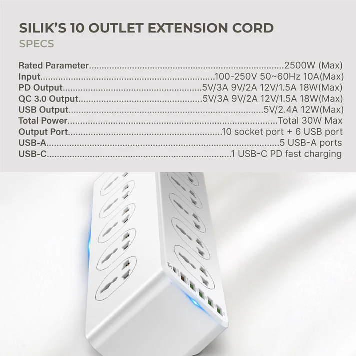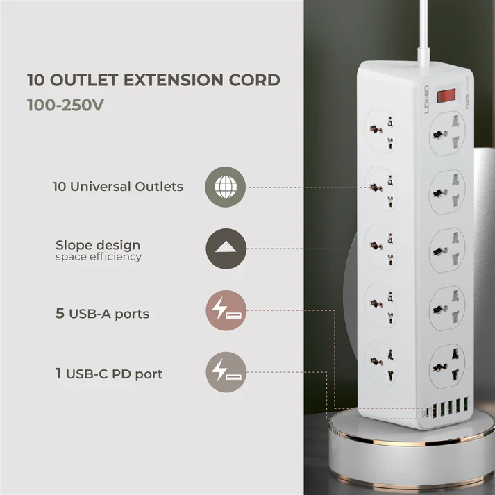 Extension Cord (10 outlets, 5USB-A, 1 USB-C)