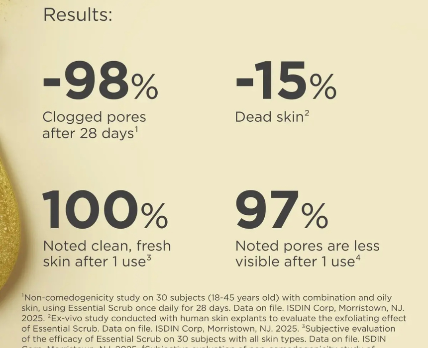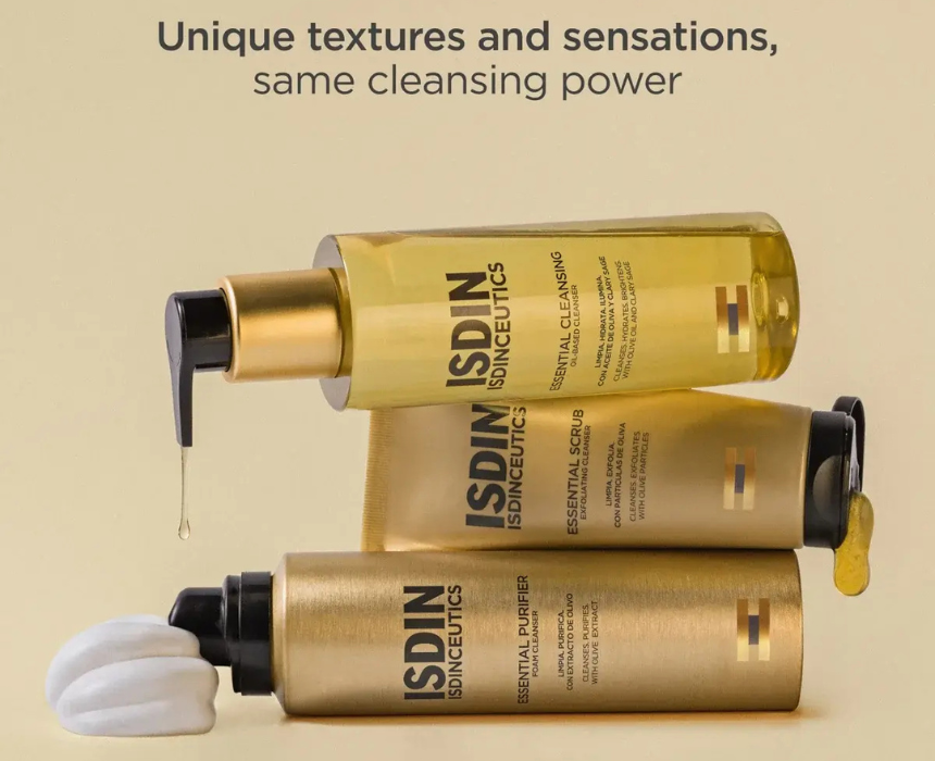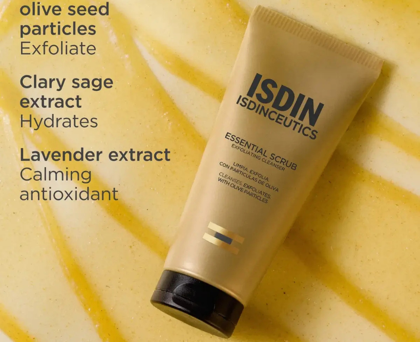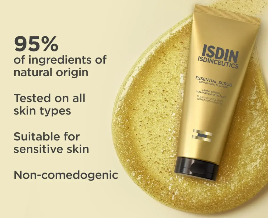 Essential Scrub is a 2 in 1 facial cleansing gel that gently cleanses and exfoliates the skin using natural olive particles. It helps refine skin texture, promote renewal, and reduce the appearance of pores for a smoother, radiant complexion. Apply to damp skin, massage gently, then rinse to remove impurities and dead skin for daily refreshed results.