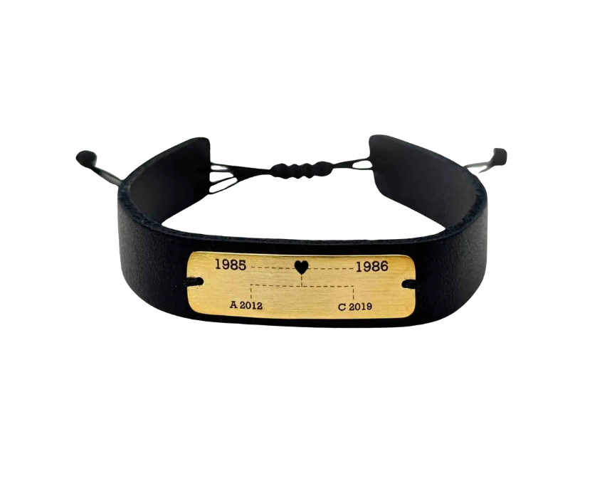 The Family Dates Bracelet is a meaningful jewelry piece designed to celebrate special moments by featuring engraved dates that represent cherished memories. Crafted for everyday wear, it pairs effortlessly with casual or elegant outfits and can be worn alone for a subtle statement or layered with other bracelets for a personalized look. A thoughtful accessory that keeps important family milestones close at hand.