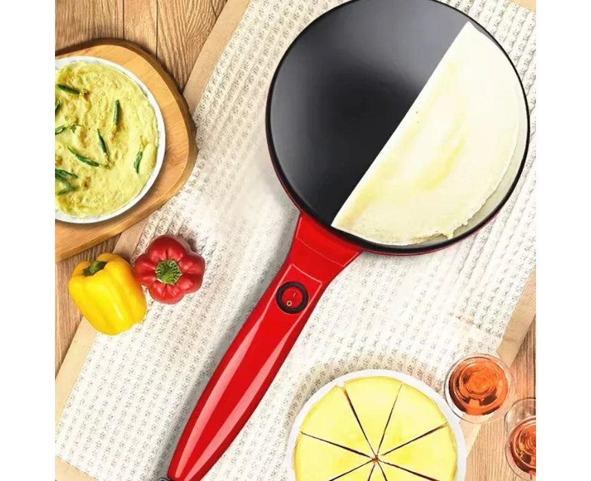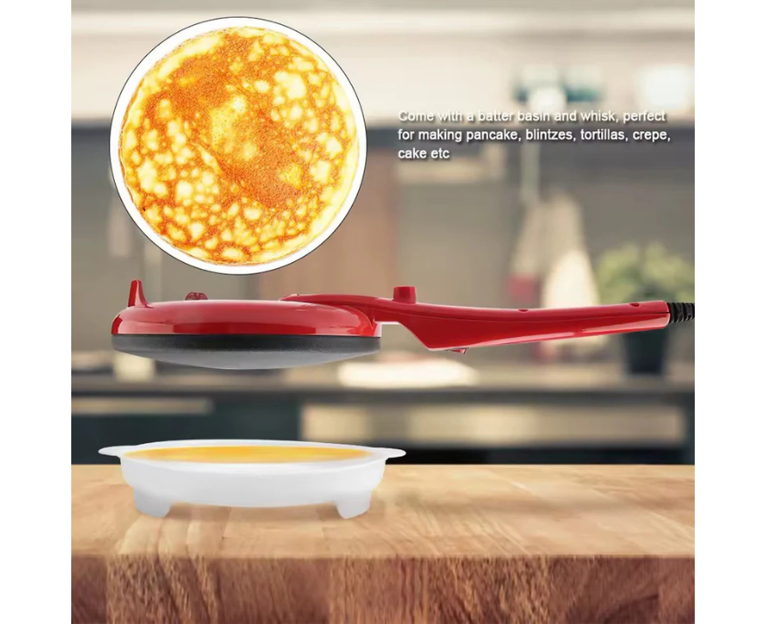 The Electric Crepe Maker delivers smooth, even pancakes and crepes in minutes with its fast 900W heating system. Its food-grade stainless steel plate features a non-stick coating for effortless flipping and easy cleaning. Ideal for home kitchens, cafés, or small businesses, it’s perfect for making pancakes, chapati, and crepes anytime with professional results.