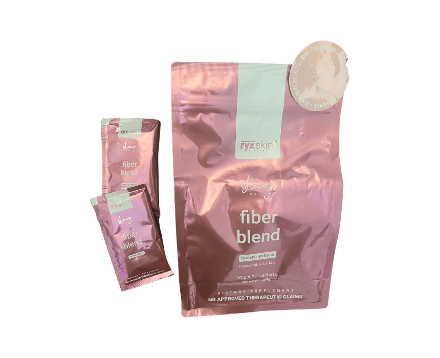Fiber Blend Lychee Sakura is a powdered dietary drink combining fiber, collagen peptides, antioxidants, and metabolism boosters. With the refreshing flavors of lychee and sakura, it supports gut health, detoxification, radiant skin, and weight management. Convenient low-calorie sachets make it easy to enjoy daily. Includes 10 sachets.
