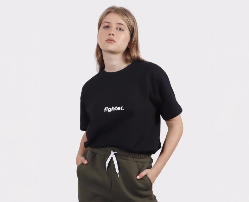 The Fighter T-shirt in Black is our best-selling top, now available in a summer version with both long and short sleeves. Made from a soft organic cotton jersey fabric, this basic T-shirt is perfect for all seasons. The model is wearing a size Small. Featuring a comfortable fit. Whether dressed up or down, this versatile piece is an essential addition to any wardrobe.