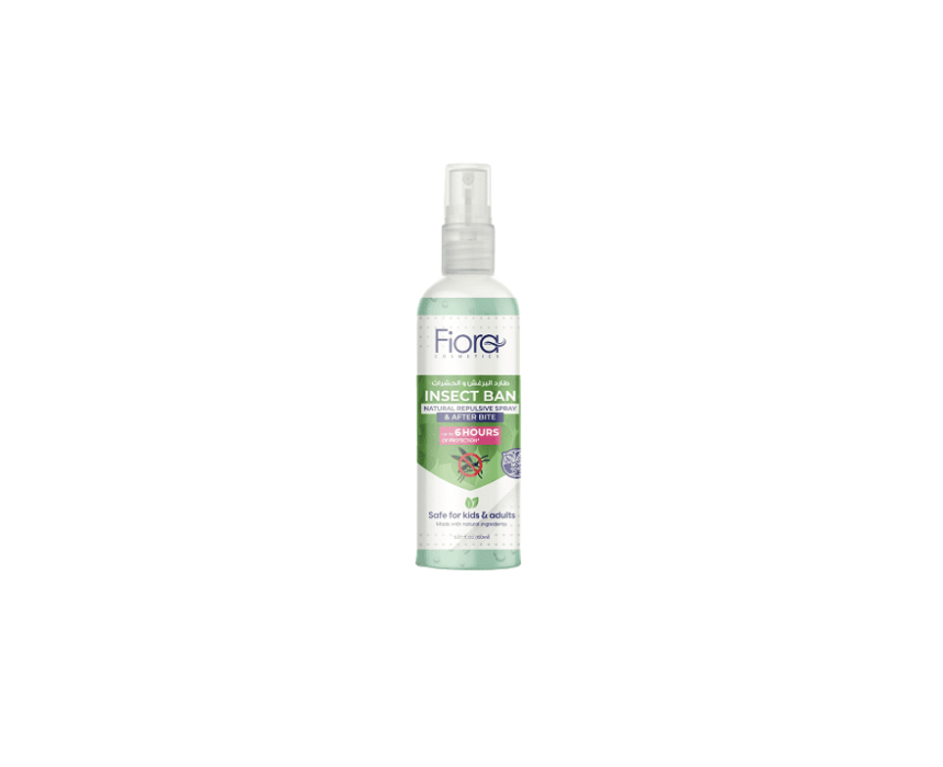Fiora Insect Ban is a natural repellent spray formulated with lavender, tea tree and eucalyptus extracts to protect against mosquitos and insects for up to 6 hours. Its soothing after-bite relief properties help calm irritation while keeping skin fresh and comfortable. Spray evenly on exposed skin before outdoor activities and reapply as needed.