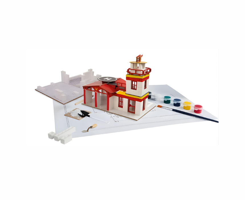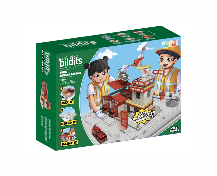 The Bildits Fire Department Construction Kit is suitable for children aged 10 years and above and includes 306 pieces. Kids can build a fully functional firehouse using real construction materials including bricks, plaster, putty, and wood elements that require precise assembly. This hands on kit encourages accuracy, attention to detail, and teamwork while teaching about fire safety and rescue operations. It provides a fun and educational experience for young builders to create a durable and realistic building.