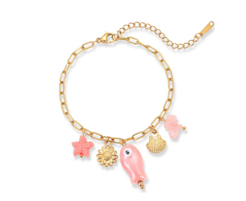 The Fish Charms Bracelet features charming fish-inspired designs on a comfortable and durable band, adding a playful, ocean-themed accent to any outfit. Crafted for everyday wear, it brings a coastal and stylish touch that complements both casual and layered looks. Wear it alone for a statement piece or stack it with other bracelets to create a personalized, marine-inspired style.