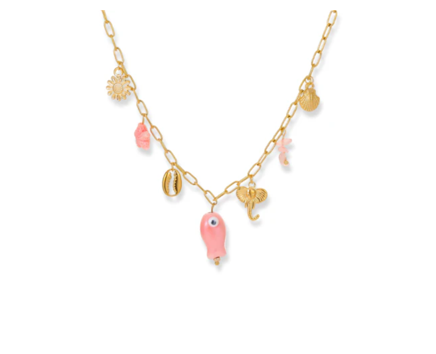 The Fish Charms Necklace features delicately crafted fish-inspired charms that bring a playful and oceanic touch to any outfit. Lightweight and versatile, it pairs beautifully with casual summer styles, beachwear, or layered with other necklaces for a trendy, chic look. A charming accessory that adds personality and subtle nautical flair to both day and evening ensembles.