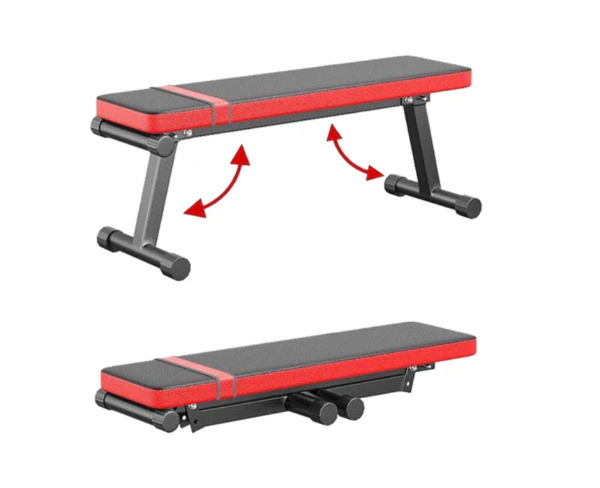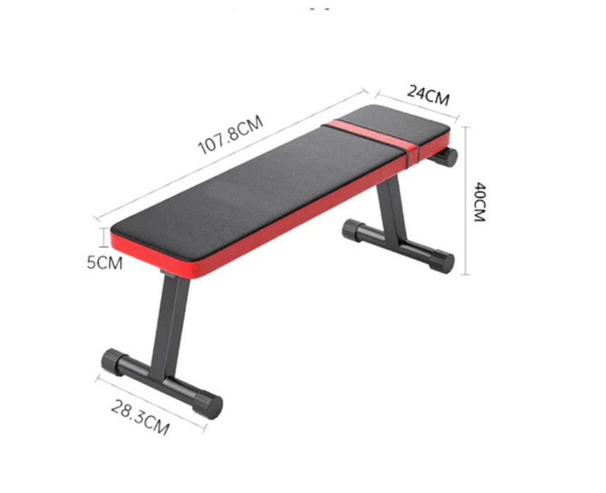 The Blaze Flat Bench is a compact home gym bench built with a strong steel frame, thick 5 cm high-density padding, non-slip base, and a 150 kg maximum load, offering stable support for dumbbell presses, rows, core, and bodyweight exercises. Measuring 107.8 × 24 × 40 cm with a wide base for balance, it fits easily into small spaces and is best used with athletic shoes and comfortable training wear for safe, effective workouts.