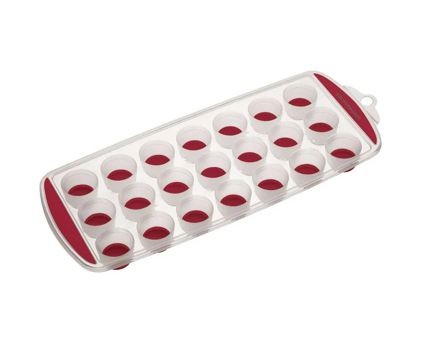 This silicone ice cube tray features a flexible base and colored non-slip grip handles for easy ice removal. Measuring 28 x 12 cm, it makes 21 ice cubes and is dishwasher safe (top shelf). Available in vibrant Colourworks shades, it can be mixed and matched with other kitchen items for a stylish and practical addition to your kitchen.