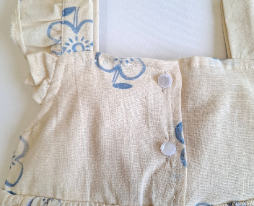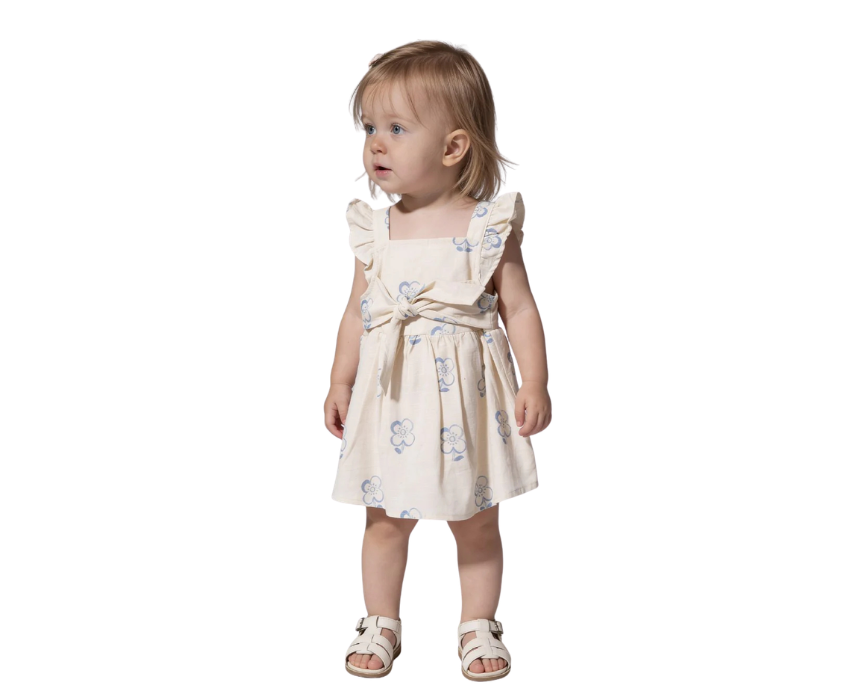 This blue floral muslin dress for ages 9 months to 3 years offers a soft, breathable fit with a charming and delicate design perfect for everyday wear or special occasions. Its lightweight fabric allows for easy layering or pairing with simple shoes and accessories for a polished look. A versatile and comfortable choice, it adds elegance and style to any young child’s wardrobe