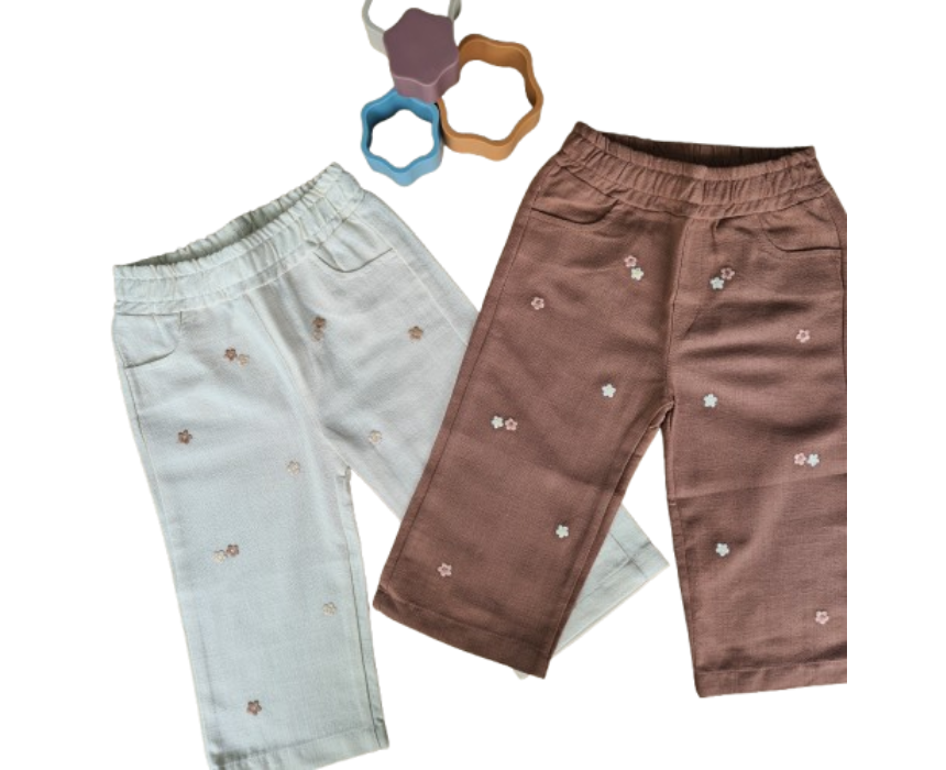 The Floral Embroidery Pants feature a soft, comfortable fit adorned with delicate floral stitching for a charming and stylish look. Perfect for everyday wear, outings, or seasonal occasions, they offer both elegance and ease of movement. Pair them with simple tops, blouses, or sweaters to complete a sweet and polished outfit.